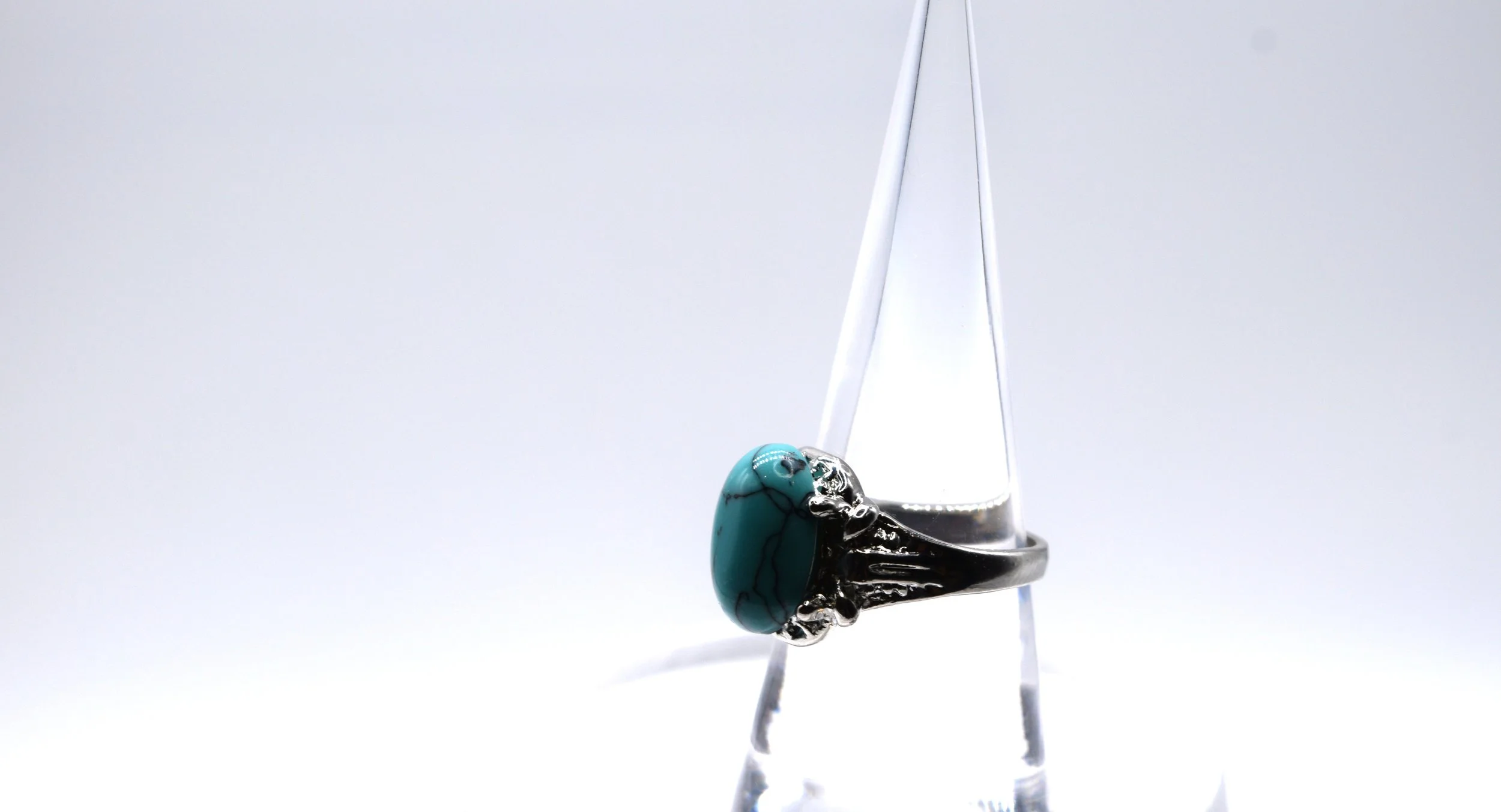 Size 8 This vintage-inspired turquoise ring is a stunning piece that adds a touch of boho chic to any outfit. The ring features a beautiful oval-shaped turquoise stone set in a simple silver band. The intricate details of the band give the ring a unique and timeless look. This ring is perfect for everyday wear or for special occasions.
